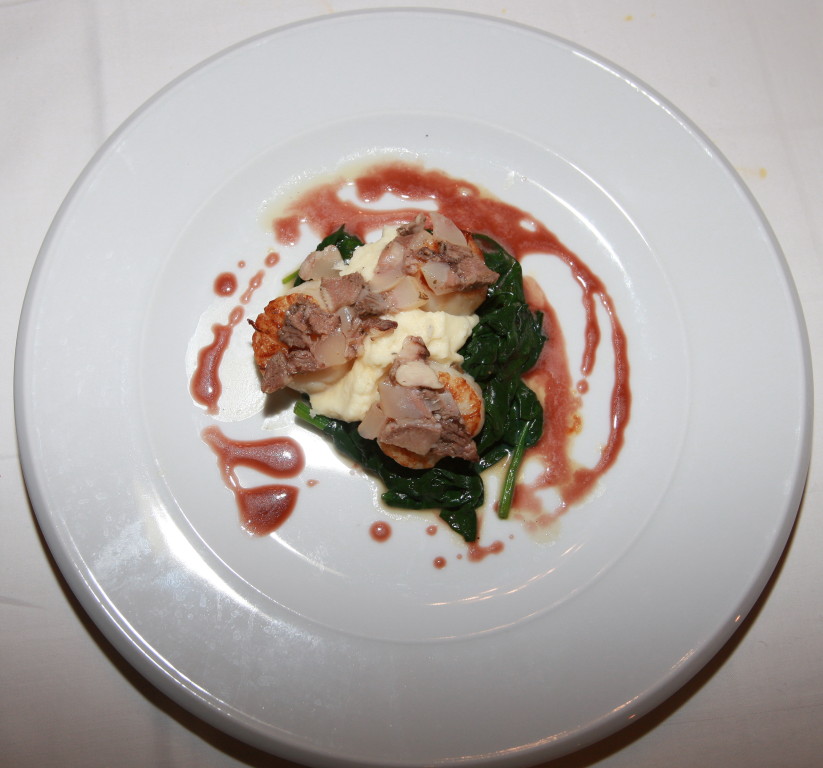 Jakobsmuschel mit geschmolzenem Kalbskopf